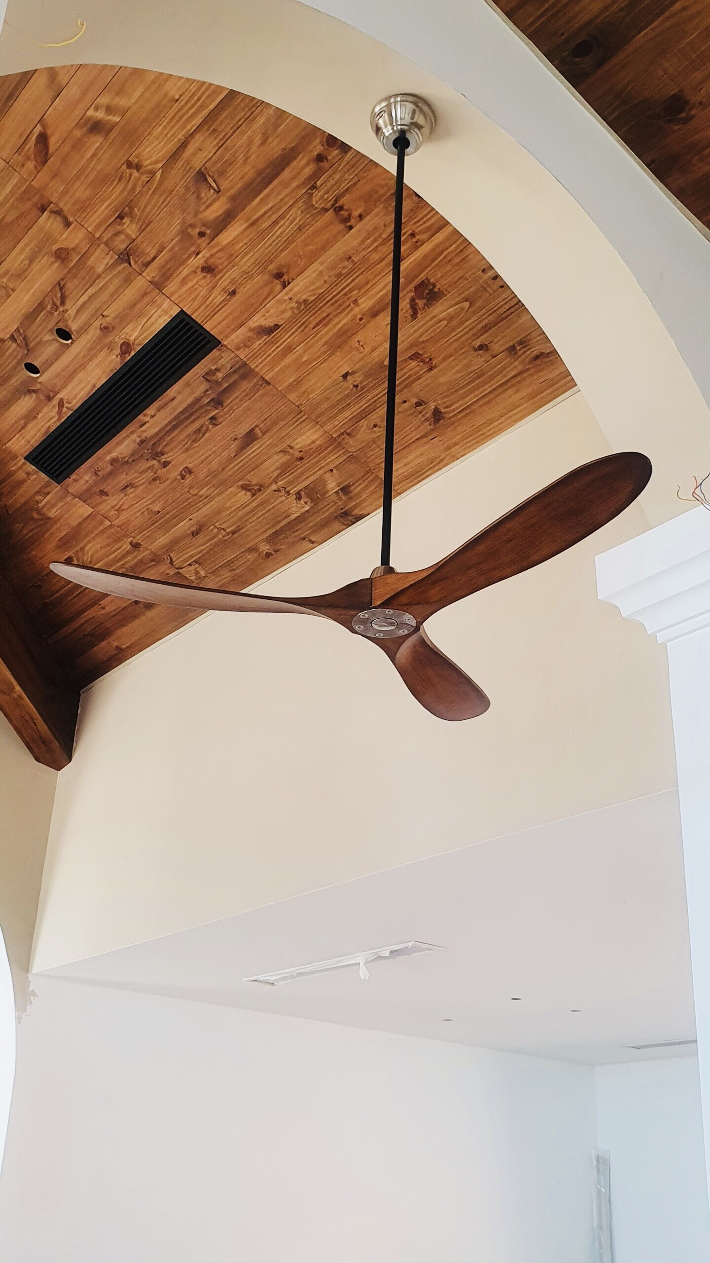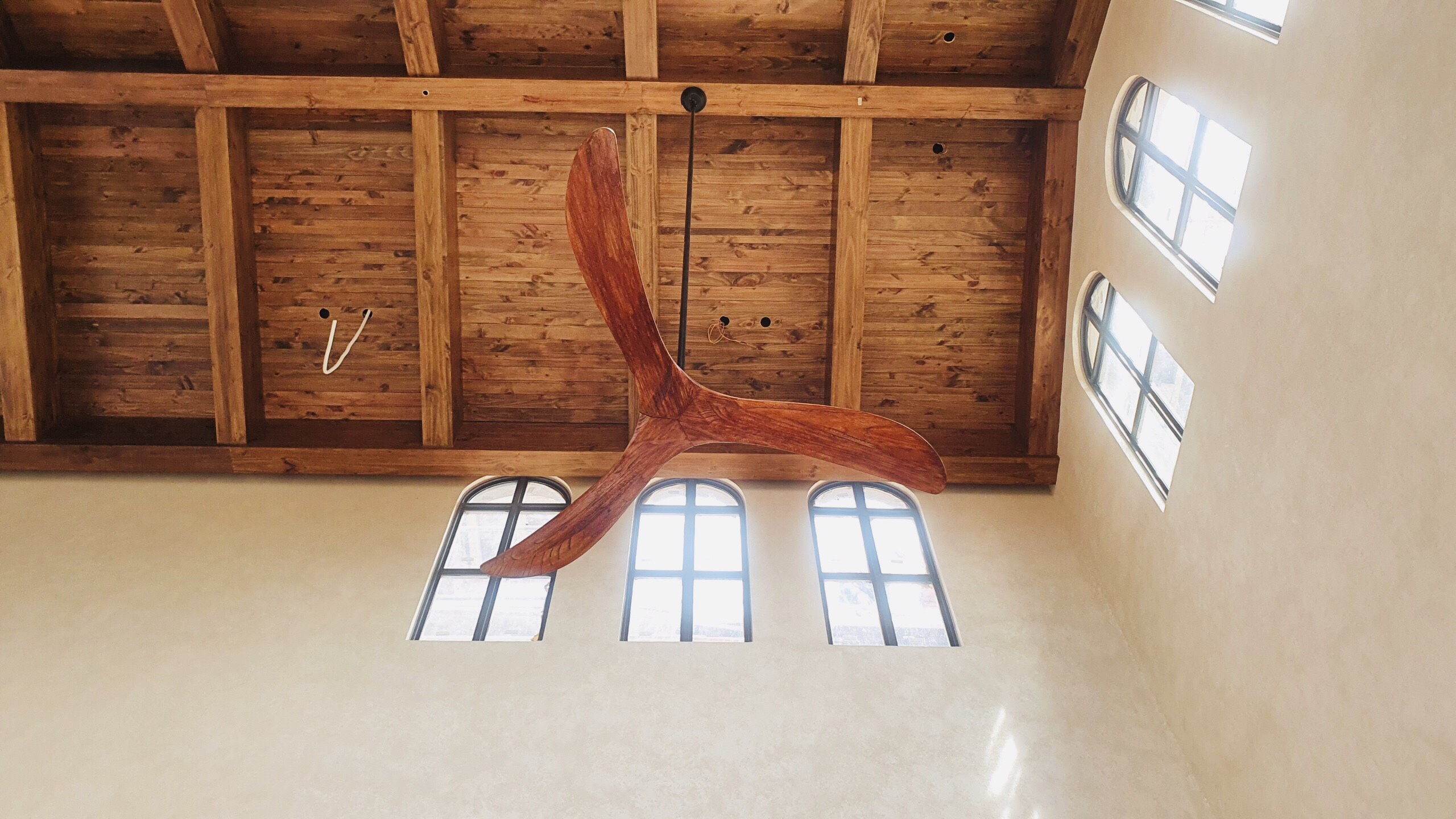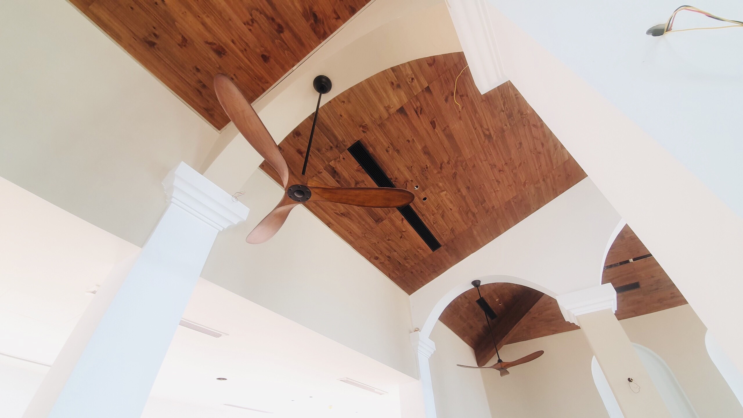 Quạt trần 3 cánh gỗ nguyên khối , Mr.Vũ -Eagle được lắp trong không gian cực kì thoáng đãng và nổi bật