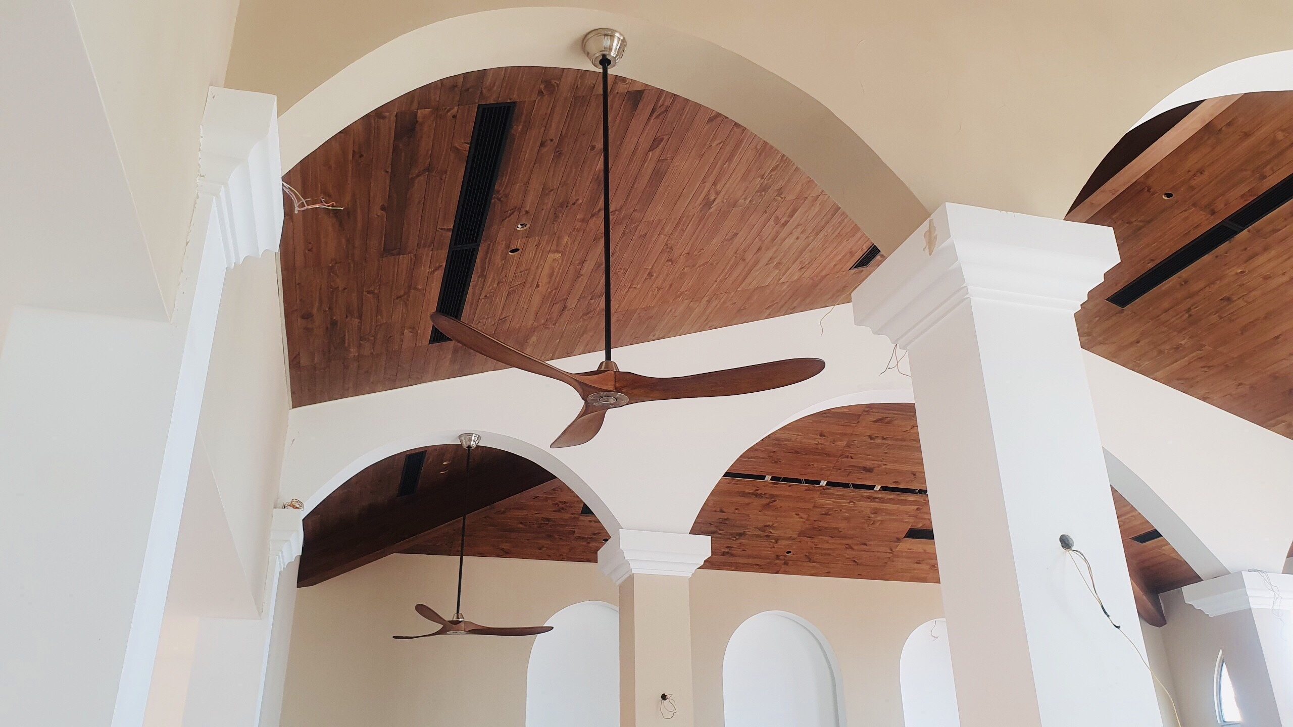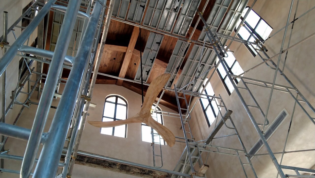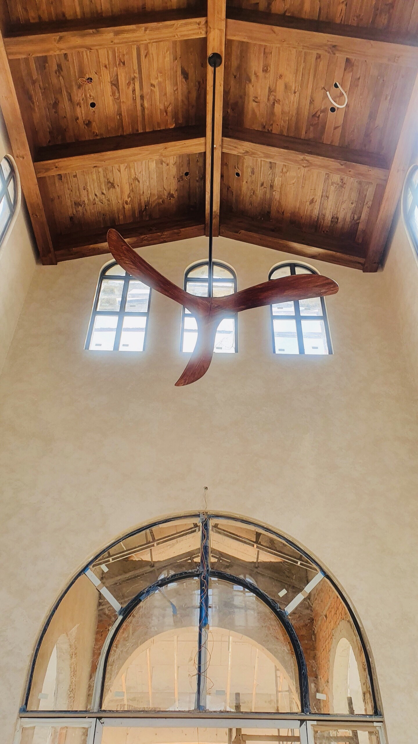 Quạt trần 3 cánh gỗ nguyên khối , Mr.Vũ -Eagle được lắp trong không gian cực kì thoáng đãng và nổi bật