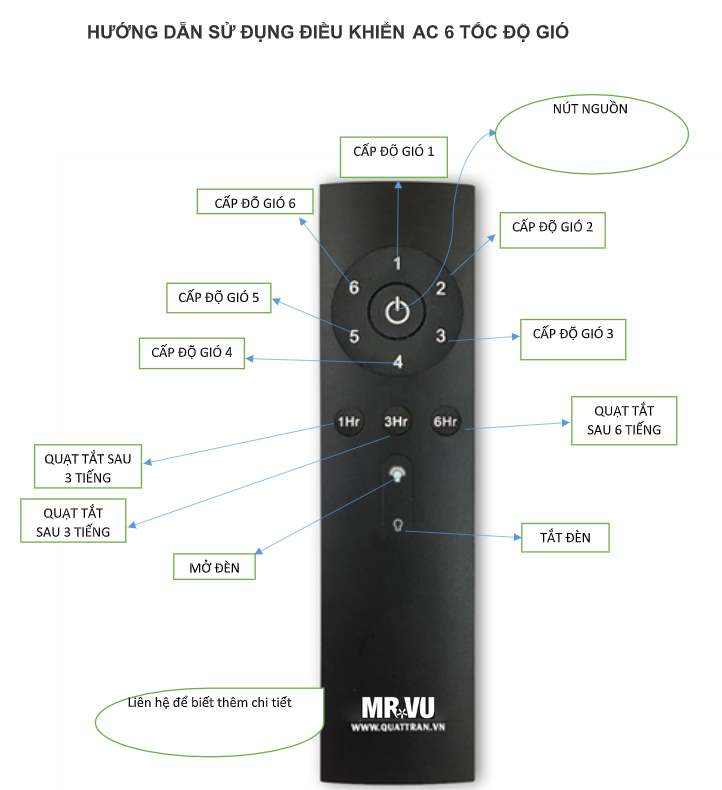 Bộ tay cầm điều khiển từ xa quạt trần Mr.Vũ – Dòng quạt động cơ AC – 6 Tốc độ gió