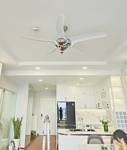 quạt 5 cánh cong nhìn như chiếc máy bay, gió mát bất ngờ và toả rộng, cả gia đình ai cũng khen, vừa đẹp và mát