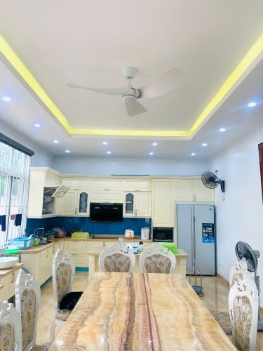 quạt 3 cánh cong nhìn lạ quá, gió rất êm , ko hề nghe tiếng động, dùng rất thư giãn, dễ chịu, đúng hàng cao cấp. lắp cho bàn ăn nhìn sang trọng hẳn, hợp với tone trắng nội thất