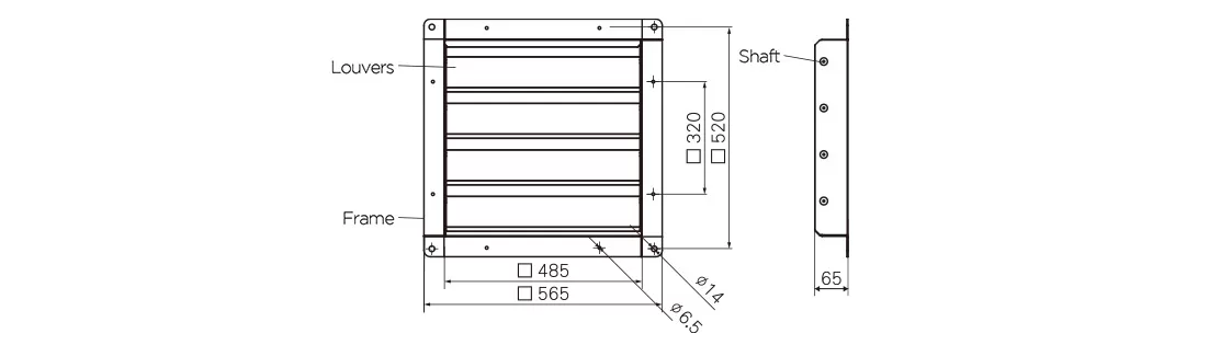 Kích thước cửa chớp quạt thông gió (đơn vị:mm)