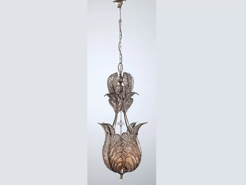 Đèn chùm đính đa pha lê VU045904DA là dòng đèn treo trần hiện đại, sang trọng. Đèn chùm được thiết kế với những cánh hoa được thiết kế bằng khung thép được rèn hoàn toàn thủ công. Bên dưới cùng của đèn chùm được thiết kế với 4 cánh hoa được thiết kế chụm vào nhau. Ở trên những gân lá được đính hoàn toàn bằng đá pha lê.