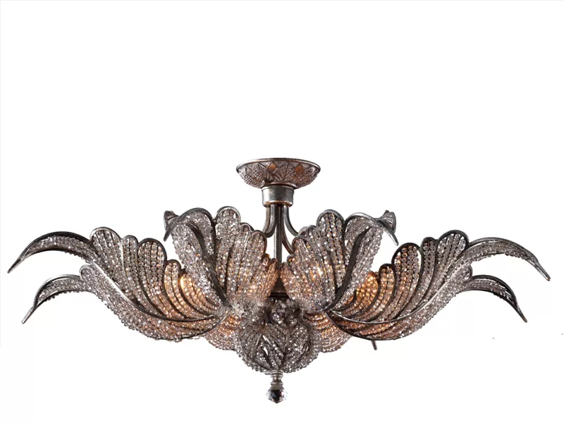 Đèn chùm đính đá tren trần mã VU045908RA là dòng đèn chùm có thiết kế cực kì chi tiết và tỉ mỉ. Với thiết kế hình lá cây uốn cong,có gân lá và những gân lá này được đính hoàn toàn đá phía sau chiếc lá. Tổng cộng đèn chùm có 8 chiếc lá và được đính đá toàn bộ trên những gân lá.