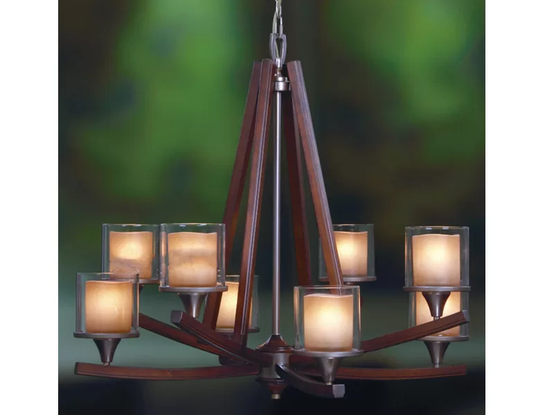 Với những khách hàng thích trang trí không gian bằng đèn chùm gỗ thì không thể bỏ qua mã đèn chùm V040908HB.