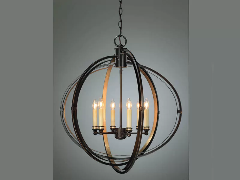 Ở giữa những hình cầu này được làm khung đen phía bên trong, bên trong khung đèn này được lắp 6 bóng đèn giống hình cây nến. Nhìn tổng thể đèn chùm giống như là khối hình trong trong hệ vũ trụ, các hình cầu được sắp xếp xen kẽ giống như một hành tinh đang chuyển động chậm.