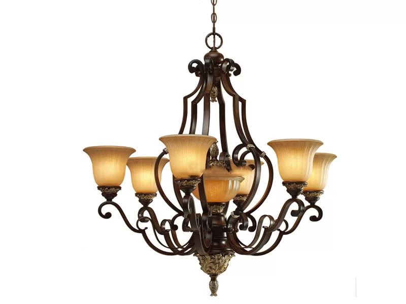 Đèn chùm mã VU020007HB là dòng đèn chùm thiết kế 1 tầng bóng. Đèn sử dụng khung bằng thép cán mỏng thành những đường cong uốn lượn theo đúng hình. Toàn bộ khung thép được sơn lớp sơn cổ màu nâu giống màu gỗ.