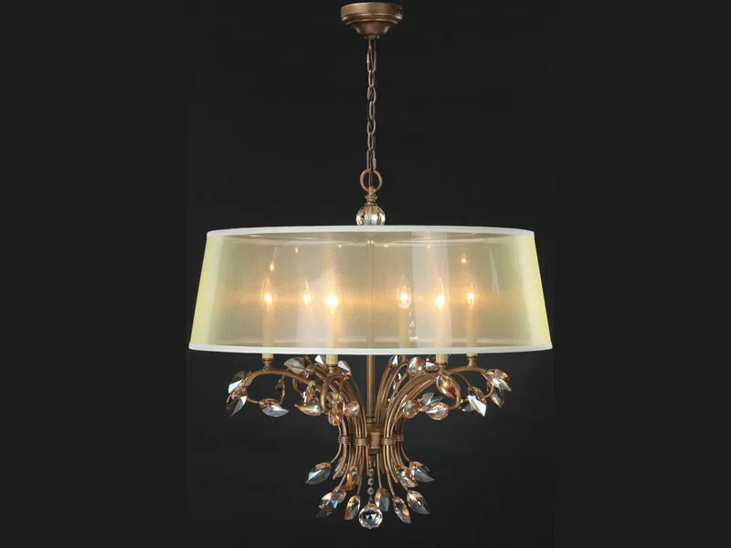 Mã đèn chùm VU055106DA được thiết kế giống như hình cây nấm. Với thiết kế phía dưới là những bó hoa pha lê được buộc lại và đặt xung quanh trụ ở giữa. Phía trên những bó hoa là 1 cây đèn, đèn được chụp bởi vải che mỏng giúp bảo vệ đèn và cũng là tạo hình của đèn chùm.