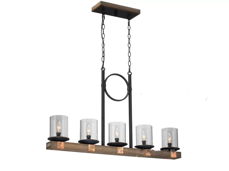 Đèn lấy màu chủ đạo là màu gỗ tạo cảm giác ấm áp và cổ kính. Với 1 thanh gỗ đỡ phía dưới những cây nến có bóng đèn gắn phía trên, bên ngoài những bóng đèn được bao bọc bởi lớp kính giúp khuếch đại được ánh sáng tốt hơn.