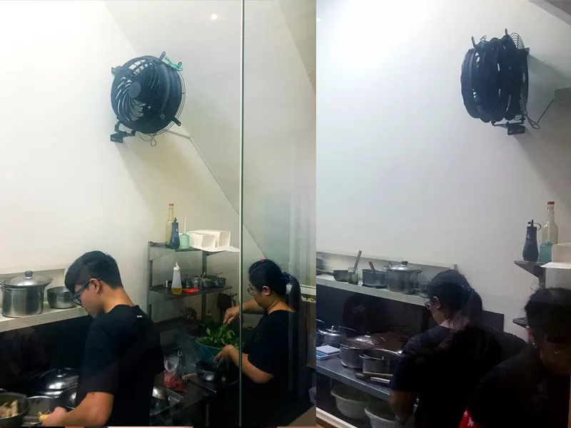 – Quạt làm mát có khả năng hút gió mạnh mẽ giúp hút mùi hôi, hơi ẩm từ trong nhà hàng đi ra ngoài nhanh chóng