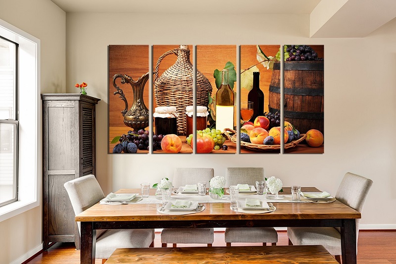 Tranh không chỉ tô điểm cho không gian bếp thêm lung linh, nghệ thuật mà còn khiến bữa cơm thêm ngon miệng và ấm cúng. Ngoài ra, tranh treo tường còn có thể giúp gia chủ đuổi tà trấn trạch, đón tài lộc, hạnh phúc vào nhà.