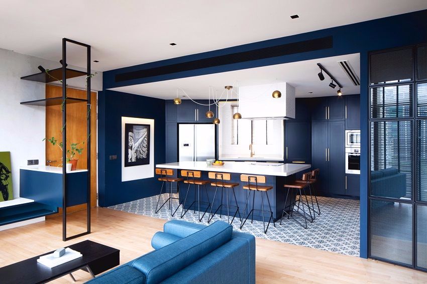 Bộ sofa, một trong những món đồ quan trọng nhất của phòng khách, nên có màu xanh biển.