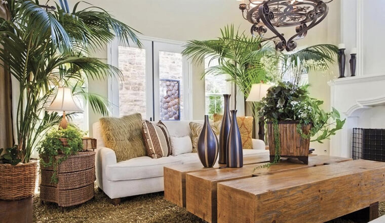 Phòng khách mệnh Mộc nên có nhiều cây xanh để trang trí.
