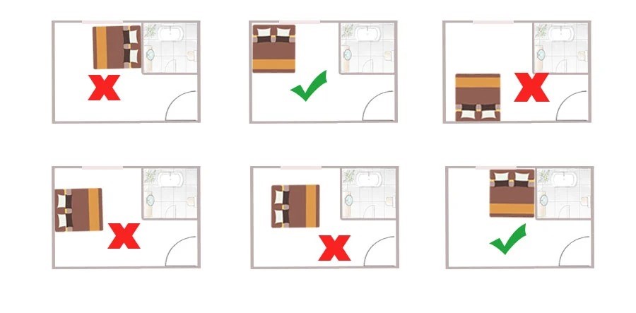 Sự cân bằng năng lượng: Tránh các yếu tố gây xung khắc như giường đối diện gương, kê dưới xà ngang hay phòng quá bí bách để duy trì dòng chảy năng lượng hài hòa.