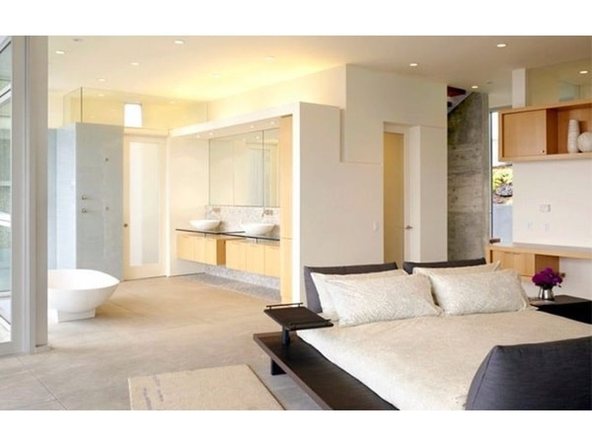 Cửa phòng tắm, nhà vệ sinh đối diện với giường ngủ