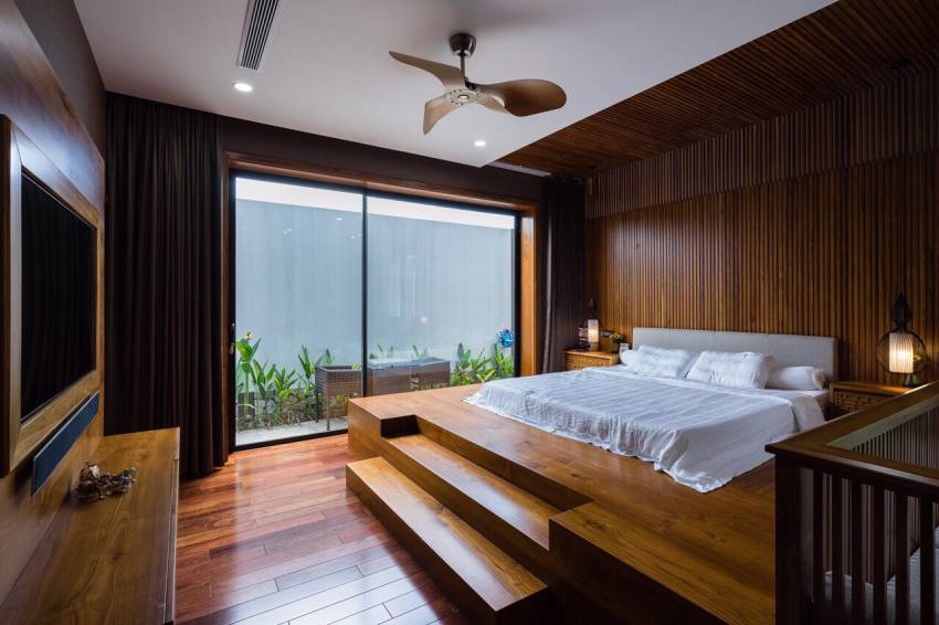 quạt trần cánh gỗ lắp đặt tại phòng ngủ