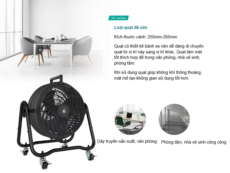 Quạt sàn sử dụng cho nhà tắm, nhà vệ sinh công cộng rất hữu ích