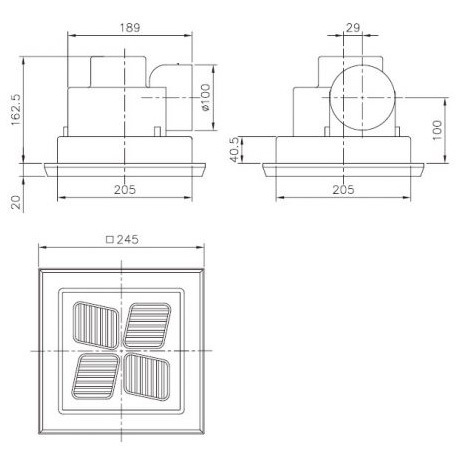 | Kích cỡ lắp đặt (mm) | 210x210x167 |
