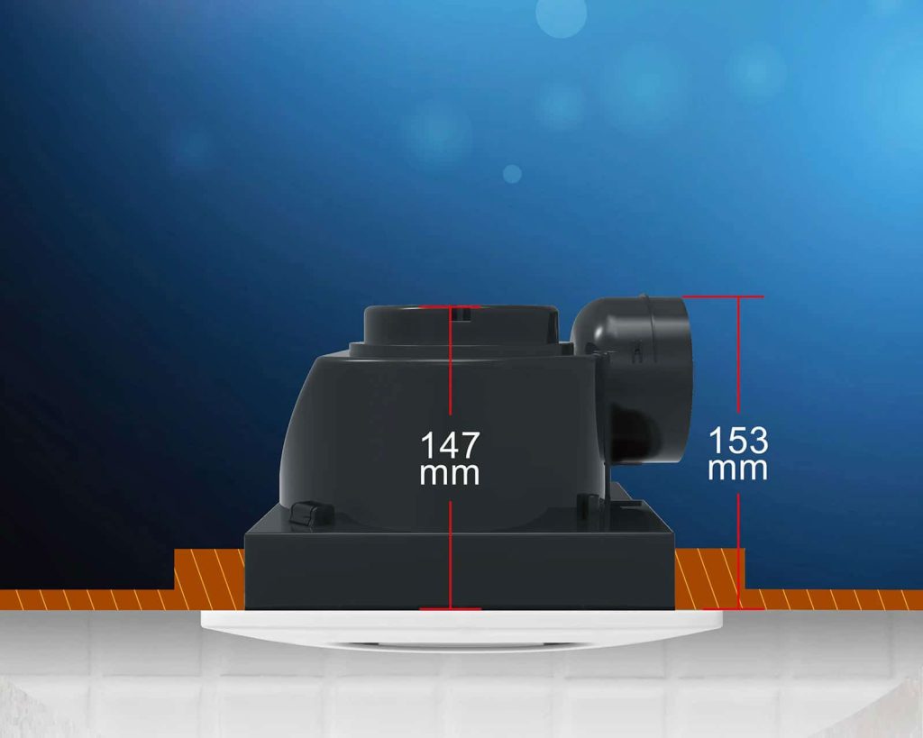 Ví dụ: Nếu thân quạt cao 15-20cm, bạn cần chừa ít nhất 25-30cm không gian để dễ dàng thao tác lắp đặt và đi ống.