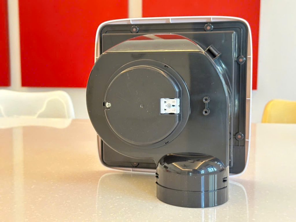 Cửa thoát gió được thiết kế như một van điều tiết phía sau Khi tắt quạt thông gió, van điều tiết phía sau sẽ có tác dụng chặn mùi hôi và muỗi xâm nhập vào phòng.
