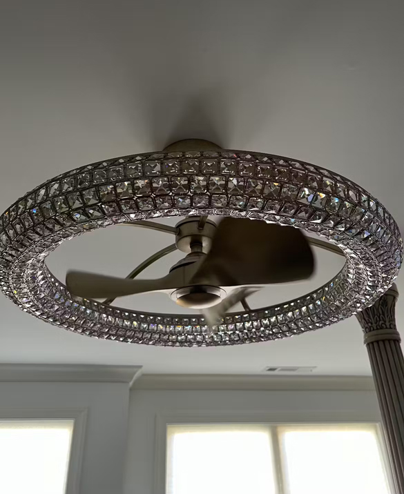 Hình ảnh lắp đặt thực tế quạt pha lê Elegan – Nâng tầm không gian sống