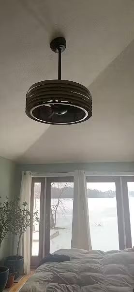 Tôi là người ngủ không sâu giấc và hầu như không nghe thấy tiếng quạt chạy. Quạt này giúp lưu thông không khí ấm từ trần nhà hình vòm của chúng tôi vào mùa đông. Kiểu dáng đẹp, che giấu được cơ chế hoạt động của quạt. Tôi hài lòng với nó.
