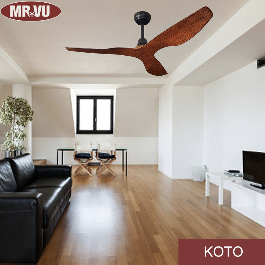 Quạt trần KOTO DC sử dụng động cơ hiệu suất cao và thiết kế cánh quạt khí động học để cung cấp luồng gió hiệu quả vừa êm ái vừa tiết kiệm năng lượng. Các cánh làm bằng polyme trong mọi thời tiết sử dụng ty quạt có độ cao khác nhau để cung cấp khả năng làm mát cục bộ, trong khi vật liệu polyme cao cấp đảm bảo luồng không khí yên tĩnh.