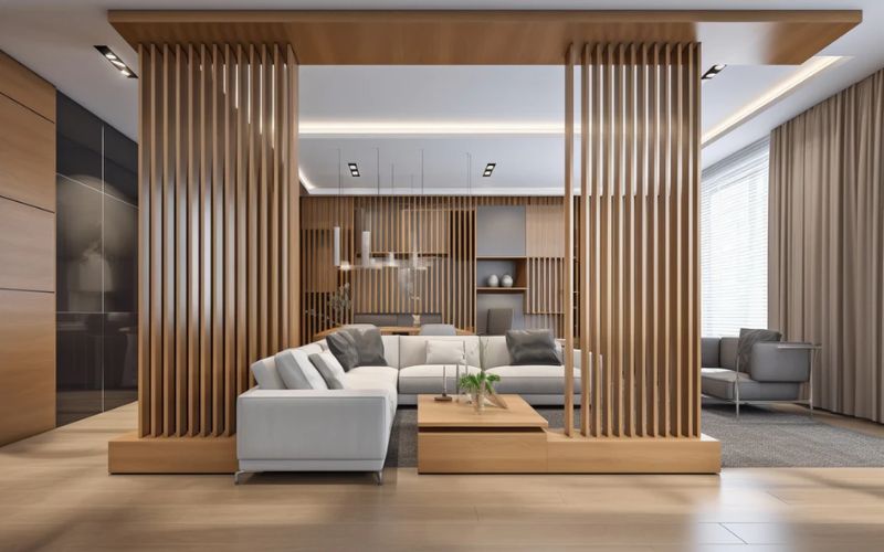 Vách ngăn phòng khách và bếp bằng loại gỗ tự nhiên đẹp